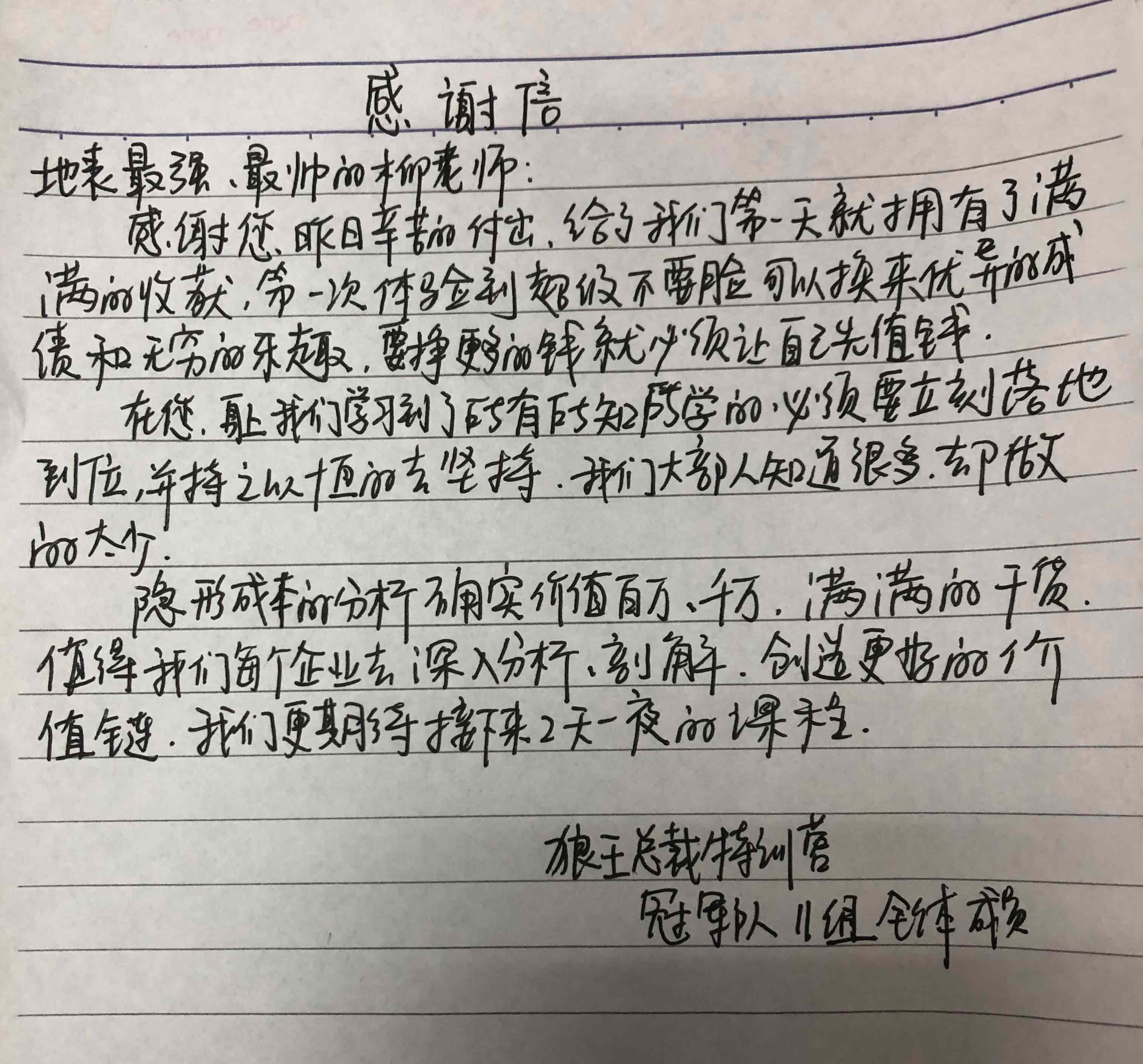 第75期狼王總裁營學員感謝信